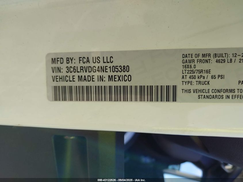 Цвет БелыйЦилиндры 6Привод Передний приводVIN 3C6LRVDG4NE105380Состояние СтационарноПовреждения Механические повреждения