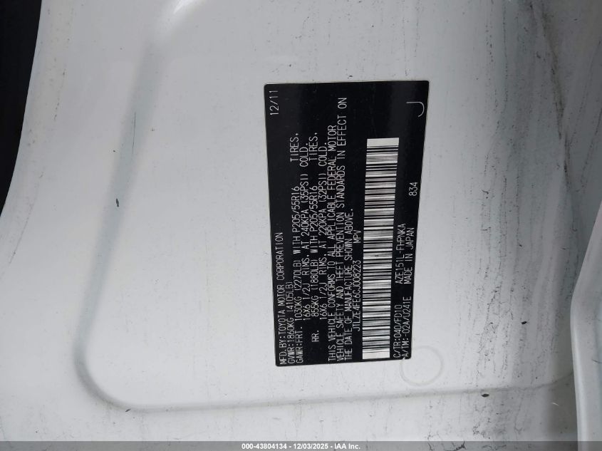 Цвет БелыйЦилиндры 4Привод Передний приводVIN JTLZE4FE6CJ008223Состояние СтационарноПовреждения Передняя или задняя AutoRIA