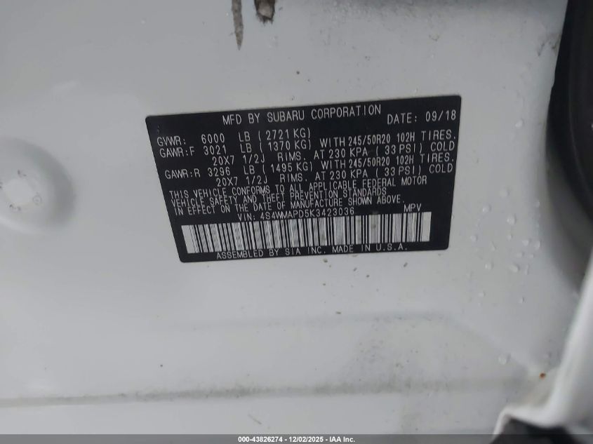 2019 SUBARU ASCENT 2019 року Бензин, 2.4, Полный привод, vin - 4S4WMAPD5K3423036 из США