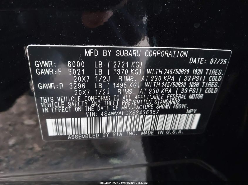 2025 SUBARU ASCENT 2025 року Бензин, 2.4, Полный привод, vin - 4S4WMAFDXS3436057 из США
