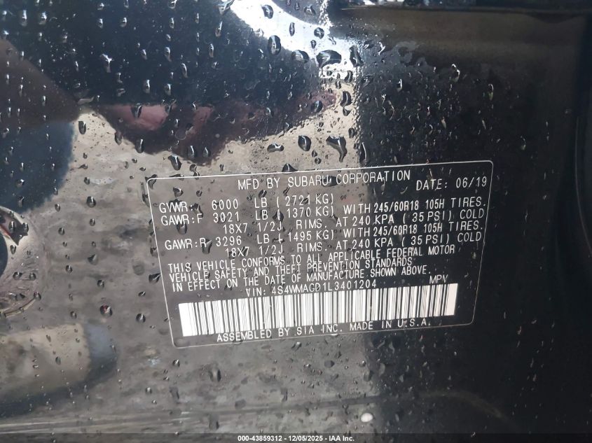 2020 SUBARU ASCENT 2020 року Бензин, 2.4, Полный привод, vin - 4S4WMACD1L3401204 из США