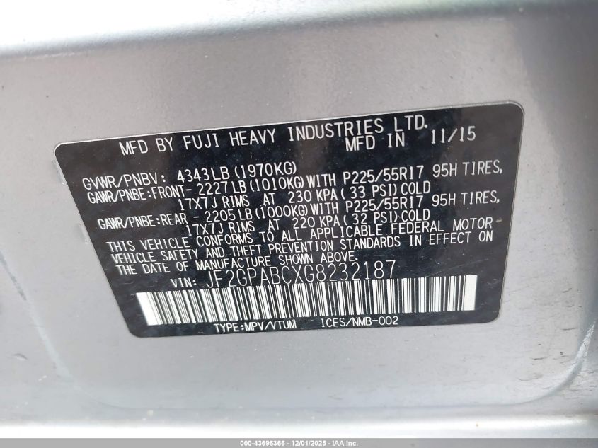 Цвет СеребряныйЦилиндры 4Привод Полный приводVIN JF2GPABCXG8232187Состояние Заводится и едет (проверено)Повреждения ХодоваяДата аукциона 2025-12-11 AutoRIA