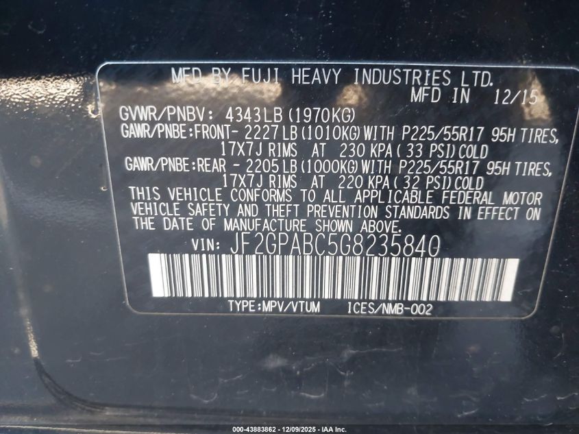 2016 SUBARU CROSSTREK 2016 року Бензин, 2.0, Полный привод, vin - JF2GPABC5G8235840 из США