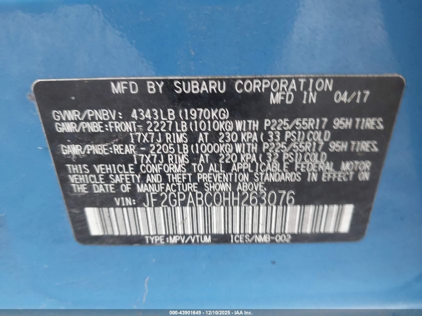 2017 SUBARU CROSSTREK 2017 року Бензин, 2.0, Полный привод, vin - JF2GPABC0HH263076 из США