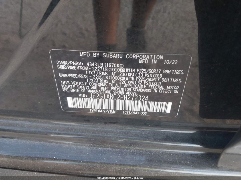 2023 SUBARU CROSSTREK 2023 року Бензин, 2.0, Полный привод, vin - JF2GTABC2PH272324 из США