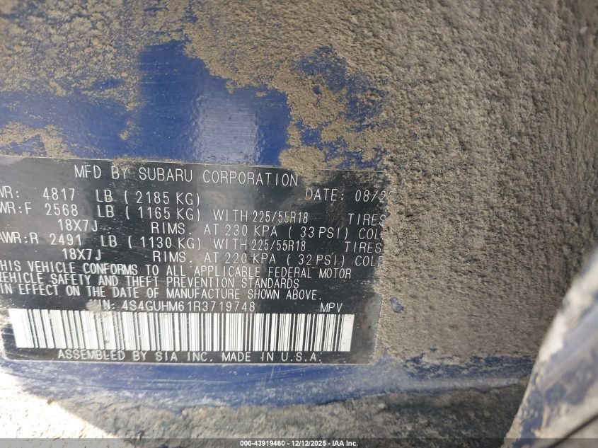 Цвет СинийЦилиндры 4Привод Полный приводVIN 4S4GUHM61R3719748Состояние СтационарноПовреждения Передняя или задняя AutoRIA