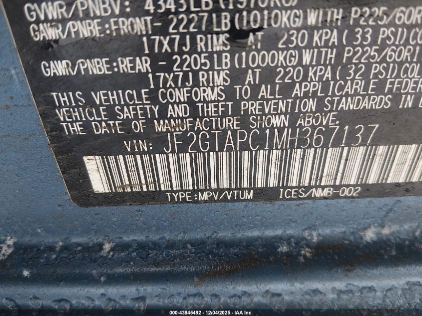 2021 SUBARU CROSSTREK 2021 року Бензин, 2.0, Полный привод, vin - JF2GTAPC1MH367137 из США