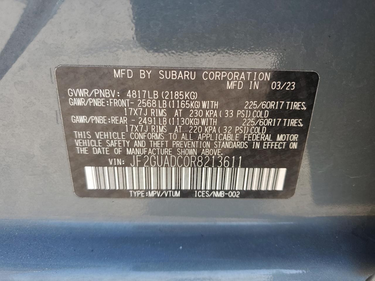 2024 SUBARU CROSSTREK 2024 року Бензин, 2.0, Полный привод, vin - JF2GUADC0R8213611 из США