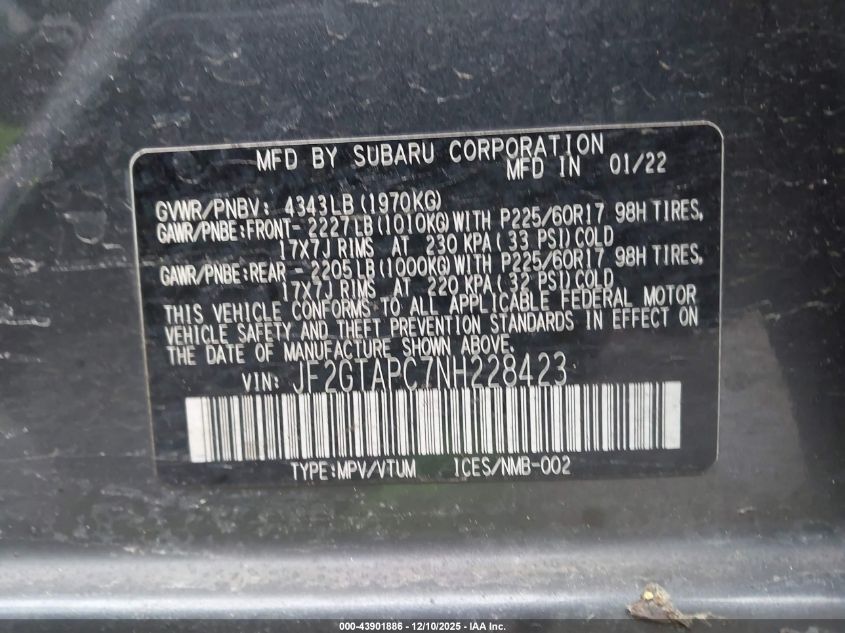 2022 SUBARU CROSSTREK 2022 року Бензин, 2.0, Полный привод, vin - JF2GTAPC7NH228423 из США