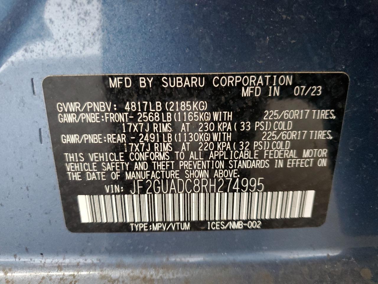 2024 SUBARU CROSSTREK 2024 року Бензин, 2.0, Полный привод, vin - JF2GUADC8RH274995 из США