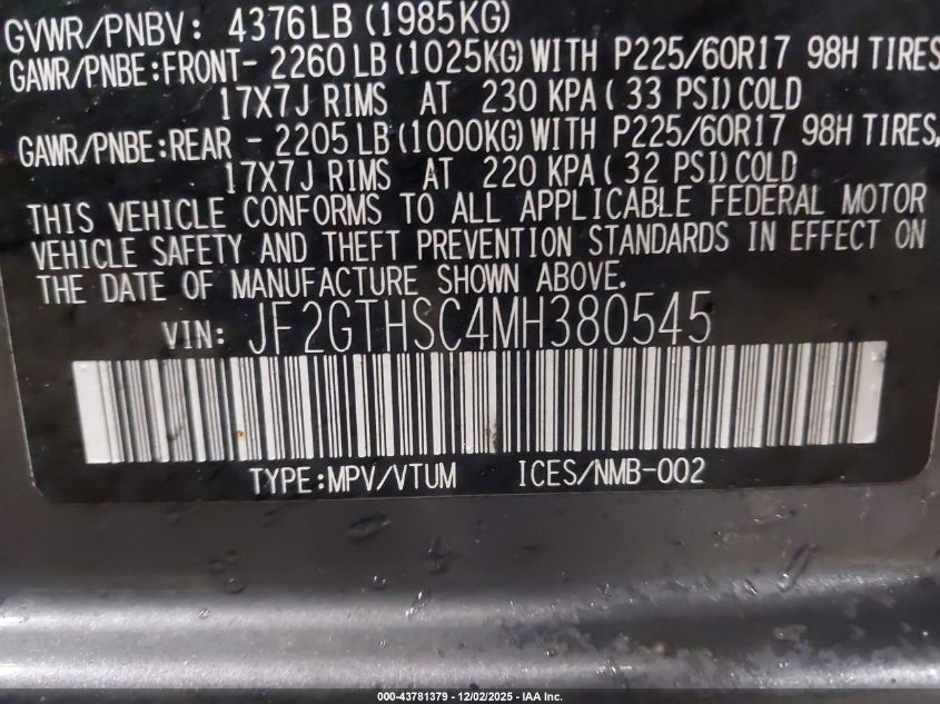 Цвет СерыйЦилиндры 4Привод Полный приводVIN JF2GTHSC4MH380545Состояние СтационарноПовреждения Передняя или задняя AutoRIA
