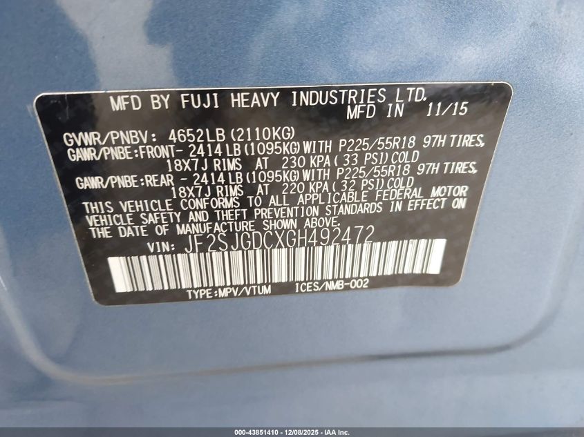 2016 SUBARU FORESTER 2.5I PREMIUM