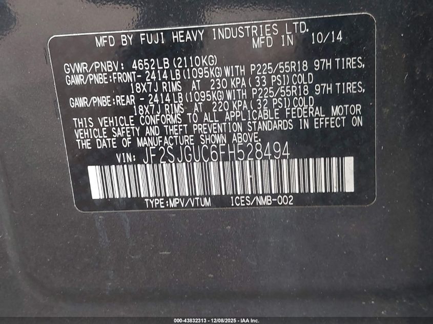 2015 SUBARU FORESTER 2.5I PREMIUM