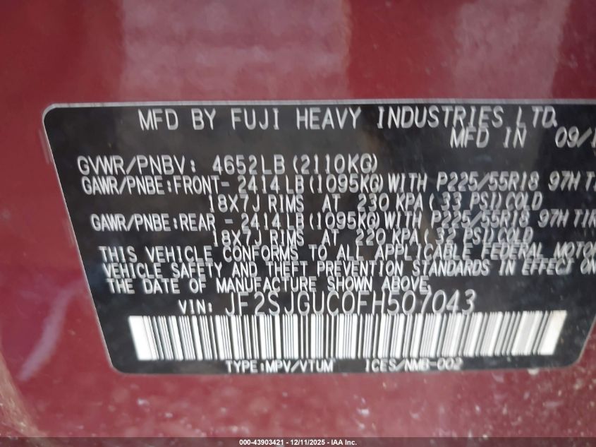 Цвет Цилиндры 4Привод Полный приводVIN JF2SJGUC0FH507043Состояние НеизвестноПовреждения Обычный износ AutoRIA