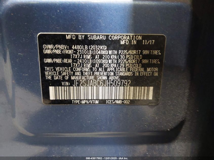 Цвет СинийЦилиндры 4Привод Полный приводVIN JF2SJABC6JH509792Состояние Заводится и едет (проверено)Повреждения Передняя или задняя AutoRIA