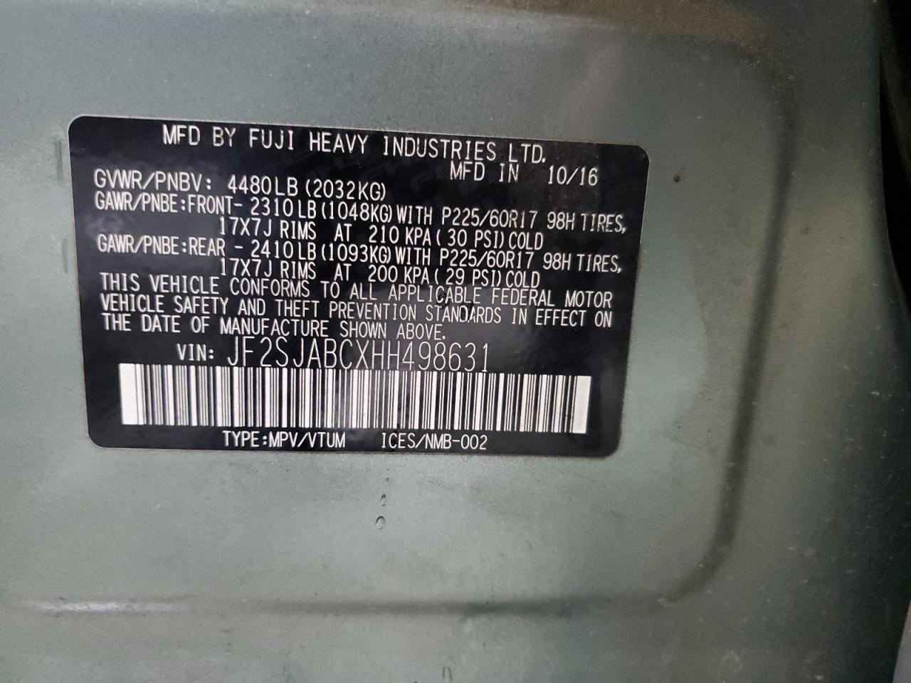 2017 SUBARU FORESTER 2017 року Бензин, 2.5, Полный привод, vin - JF2SJABCXHH498631 из США