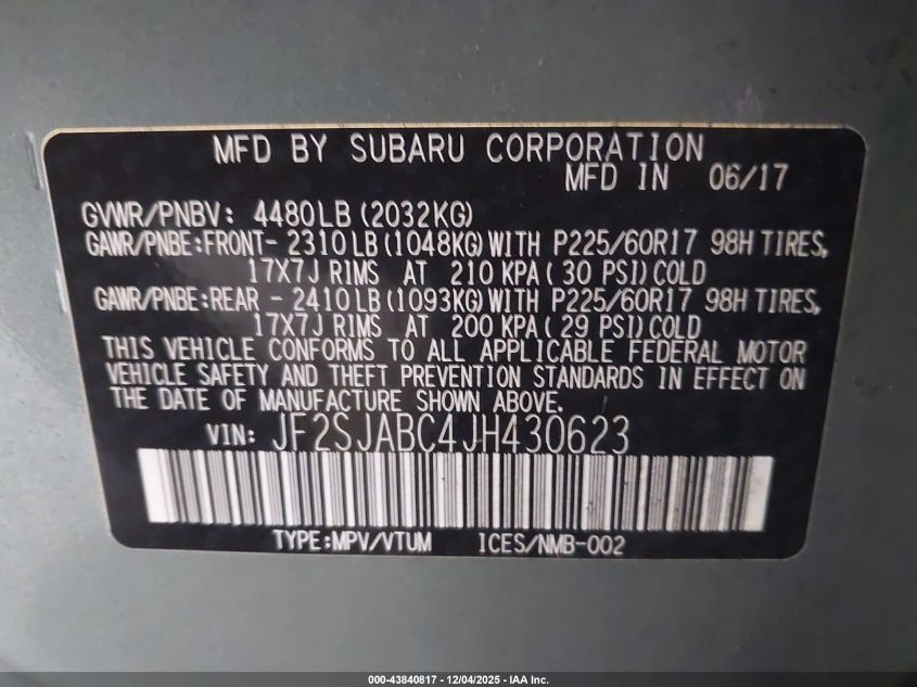 2018 SUBARU FORESTER 2018 року Бензин, 2.5, Полный привод, vin - JF2SJABC4JH430623 из США