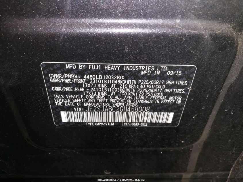 2016 SUBARU FORESTER 2016 року Бензин, 2.5, Полный привод, vin - JF2SJABC2GH458008 из США