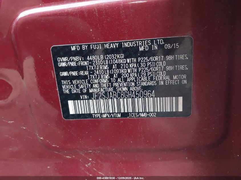 Цвет КрасныйЦилиндры 4Привод Полный приводVIN JF2SJABC8GH450964Состояние Заводится и едет (проверено)Повреждения Передняя или задняя AutoRIA