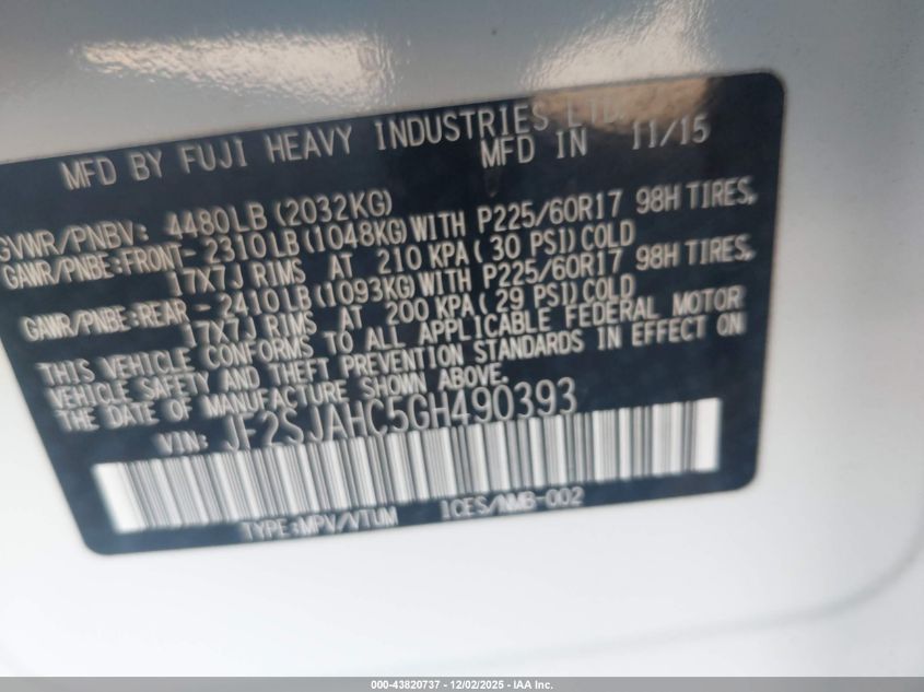 2016 SUBARU FORESTER 2.5I PREMIUM