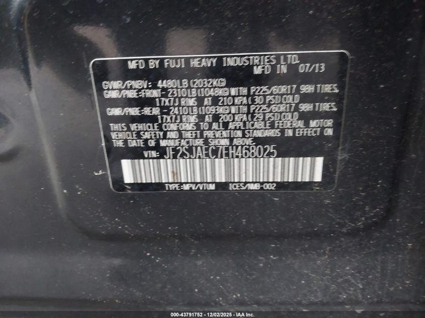 2014 SUBARU FORESTER 2014 року Бензин, 2.5, Полный привод, vin - JF2SJAEC7EH468025 из США