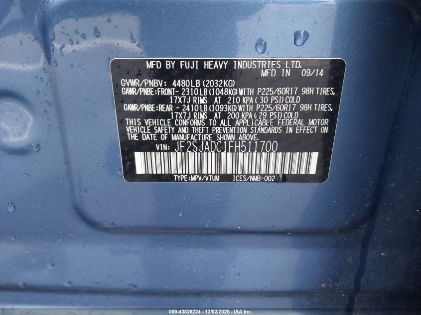 2015 SUBARU FORESTER 2015 року Бензин, 2.5, Полный привод, vin - JF2SJADC1FH511700 из США