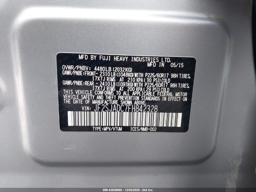 Цвет СерыйЦилиндры 4Привод Полный приводVIN JF2SJADC7FH842328Состояние СтационарноПовреждения Передняя или задняя AutoRIA