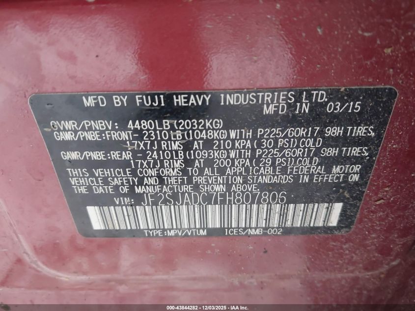 2015 SUBARU FORESTER 2.5I LIMITED
