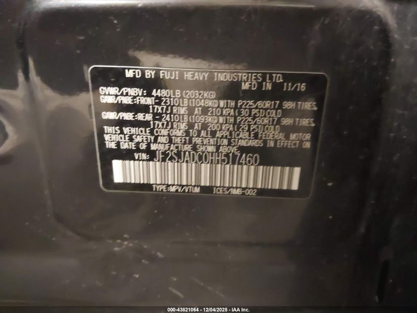 2017 SUBARU FORESTER 2017 року Бензин, 2.5, Полный привод, vin - JF2SJADC0HH517460 из США