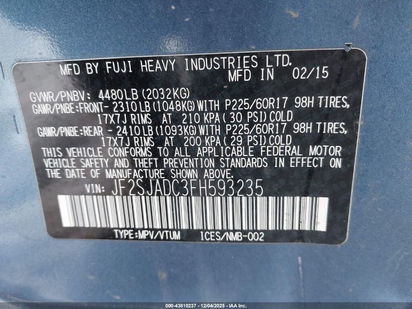 2015 SUBARU FORESTER 2015 року Бензин, 2.5, Полный привод, vin - JF2SJADC3FH593235 из США