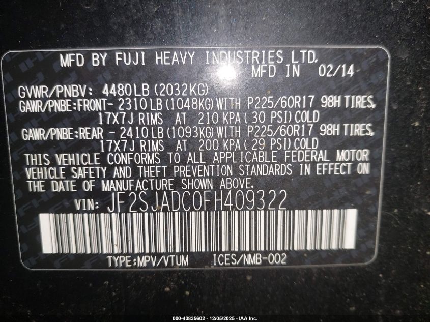 2015 SUBARU FORESTER 2015 року Бензин, 2.5, Полный привод, vin - JF2SJADC0FH409322 из США