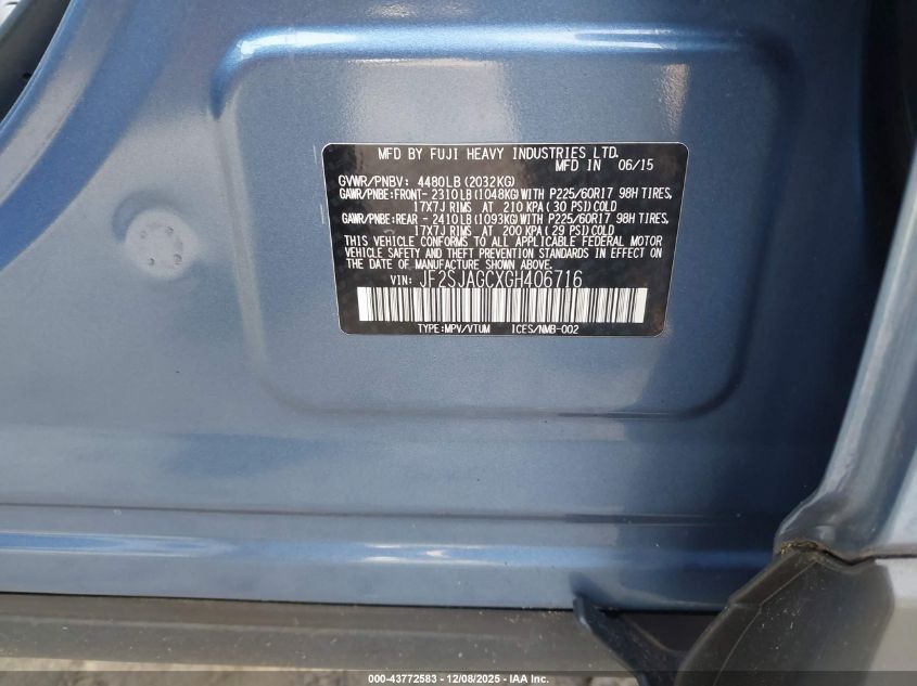 2016 SUBARU FORESTER 2016 року Бензин, 2.5, Полный привод, vin - JF2SJAGCXGH406716 из США