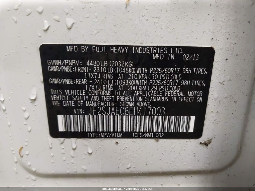 Цвет БелыйЦилиндры 4Привод Полный приводVIN JF2SJAEC6EH417003Состояние Заводится и едет (проверено)Повреждения Передняя левая AutoRIA
