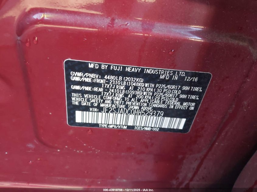 2017 SUBARU FORESTER 2017 року Бензин, 2.5, Полный привод, vin - JF2SJADC0HH529379 из США