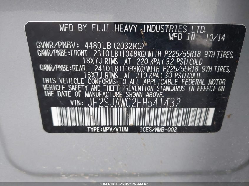 2015 SUBARU FORESTER 2015 року Бензин, 2.5, Полный привод, vin - JF2SJAWC2FH541432 из США