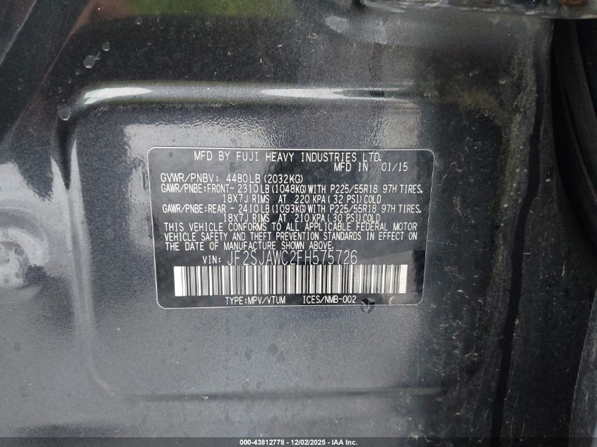 2015 SUBARU FORESTER 2015 року Бензин, 2.5, Полный привод, vin - JF2SJAWC2FH575726 из США