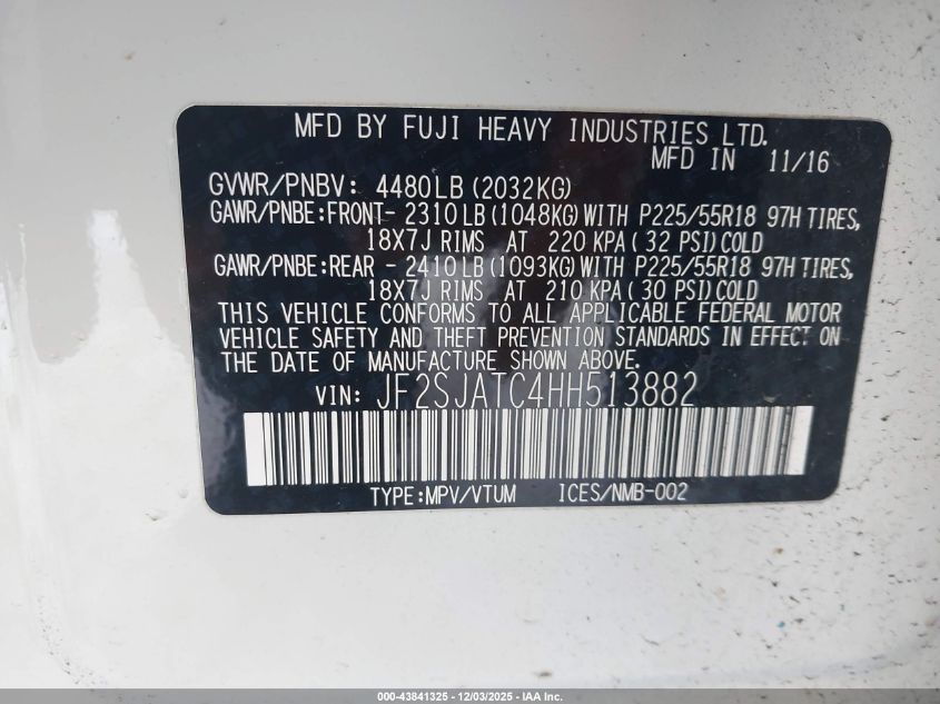 2017 SUBARU FORESTER 2017 року Бензин, 2.5, Полный привод, vin - JF2SJATC4HH513882 из США