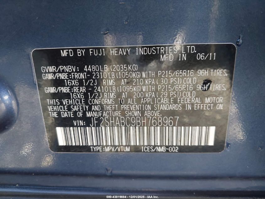 2011 SUBARU FORESTER 2011 року Бензин, 2.5, Полный привод, vin - JF2SHABC9BH768967 из США