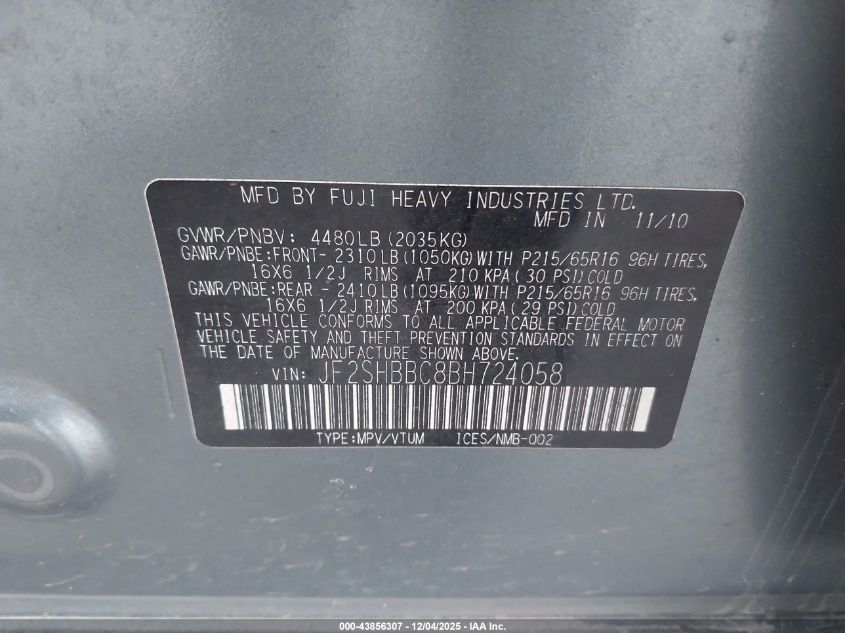 2011 SUBARU FORESTER 2011 року Бензин, 2.5, Полный привод, vin - JF2SHBBC8BH724058 из США