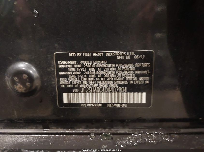 2013 SUBARU FORESTER 2013 року Бензин, 2.5, Полный привод, vin - JF2SHABC4DH402904 из США