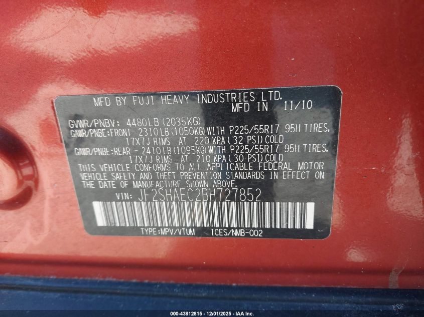 2011 SUBARU FORESTER 2011 року Бензин, 2.5, Полный привод, vin - JF2SHAEC2BH727852 из США