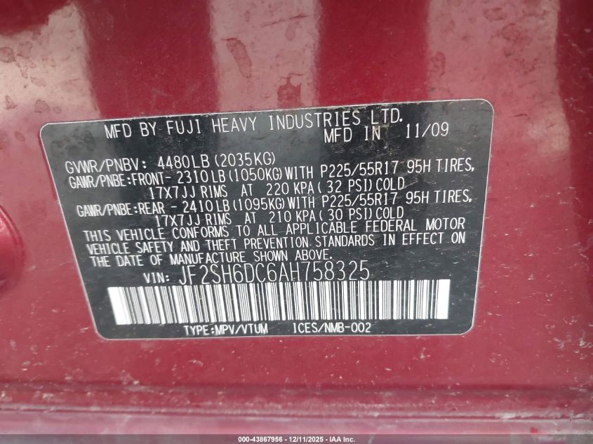 2010 SUBARU FORESTER 2010 року Бензин, 2.5, Полный привод, vin - JF2SH6DC6AH758325 из США