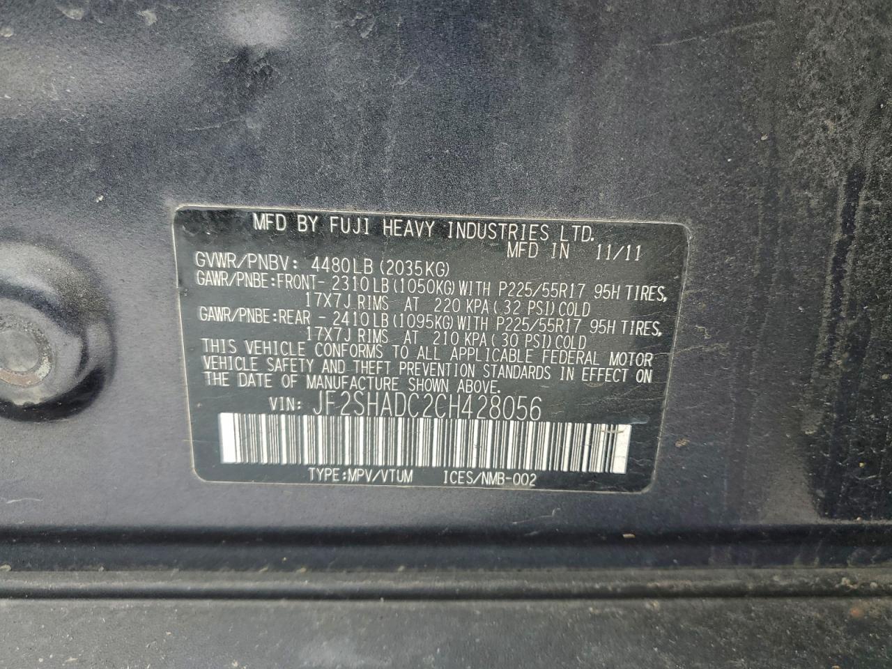 Цвет ЧерныйЦилиндры 4Привод Полный приводVIN JF2SHADC2CH428056Состояние Заводится и едет (проверено)Повреждения Передняя или задняя AutoRIA