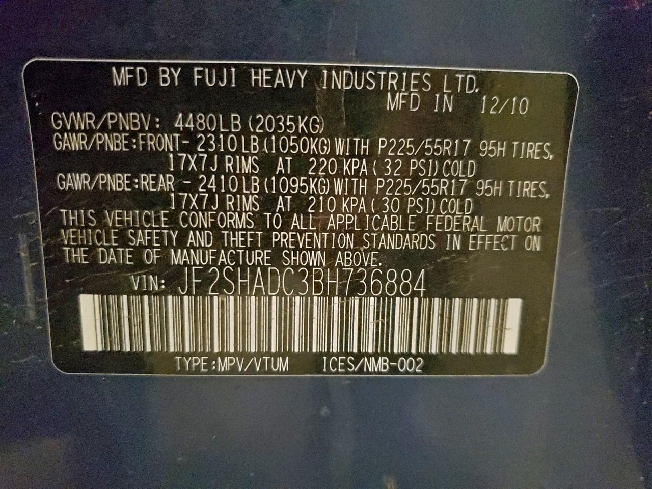 2011 SUBARU FORESTER 2011 року Бензин, 2.5, Полный привод, vin - JF2SHADC3BH736884 из США