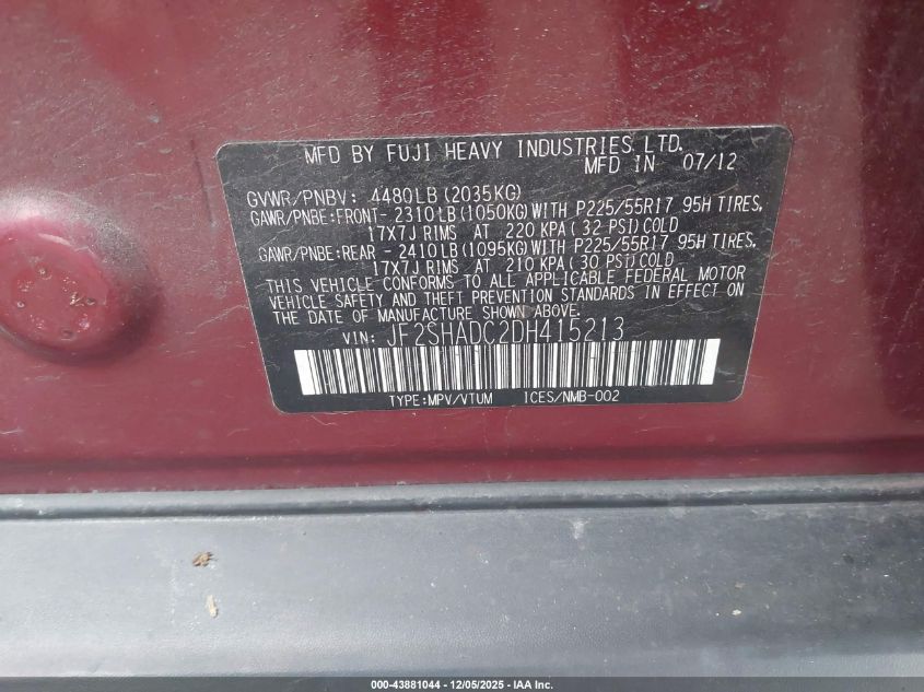 2013 SUBARU FORESTER LIMITED