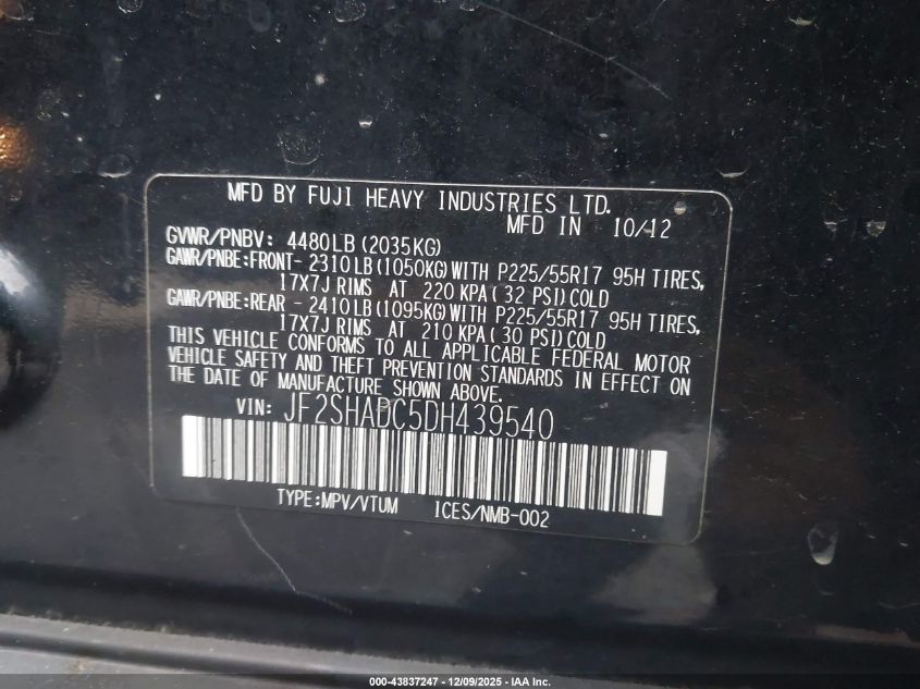 2013 SUBARU FORESTER 2013 року Бензин, 2.5, Полный привод, vin - JF2SHADC5DH439540 из США