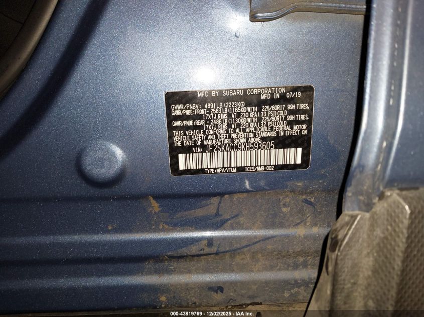 2019 SUBARU FORESTER 2019 року Бензин, 2.5, Полный привод, vin - JF2SKACC9KH593605 из США