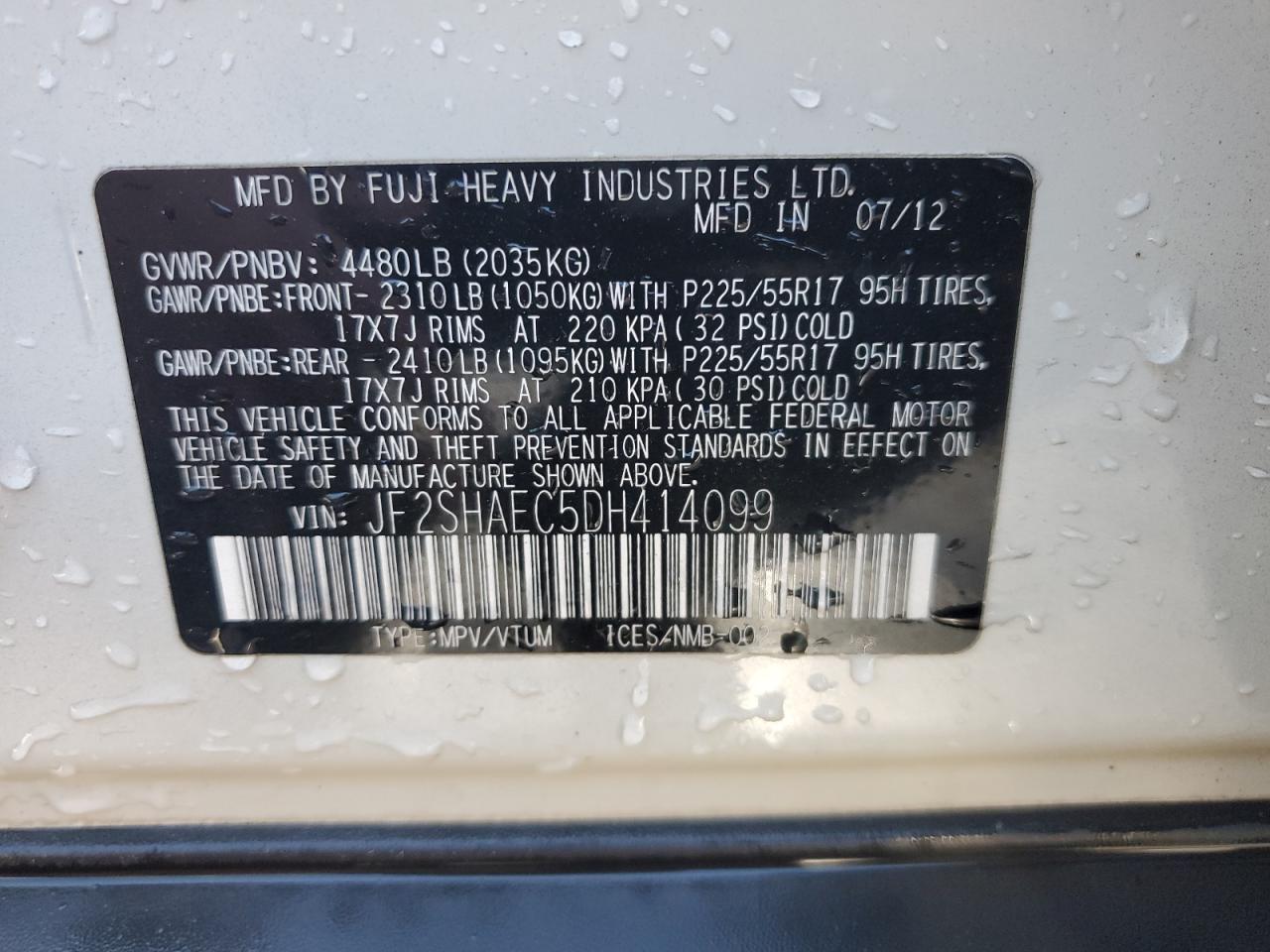 Цвет БелыйЦилиндры 4Привод Полный приводVIN JF2SHAEC5DH414099Состояние Заводится и едет (проверено)Повреждения Передняя или задняя AutoRIA