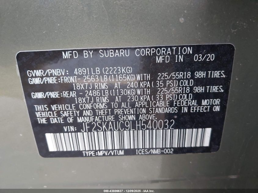 2020 SUBARU FORESTER 2020 року Бензин, 2.5, Полный привод, vin - JF2SKAUC9LH540032 из США