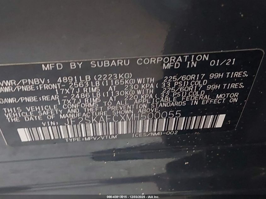 2021 SUBARU FORESTER 2021 року Бензин, 2.5, Полный привод, vin - JF2SKAFCXMH500055 из США